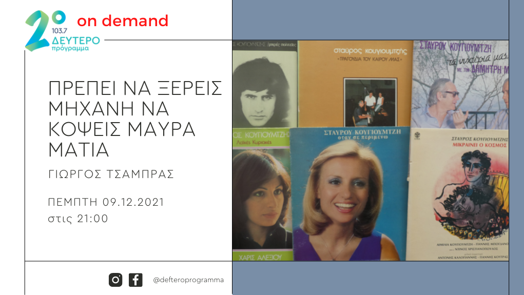 Πέμπτη 9 Δεκεμβρίου, 9 με 10 το βράδυ, στο Δεύτερο Πρόγραμμα 103.7.