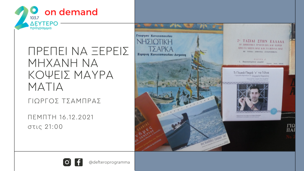 Πέμπτη 16 Δεκεμβρίου, 9 με 10 το βράδυ, στο Δεύτερο Πρόγραμμα.