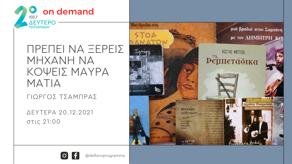 Δευτέρα 20 και Τρίτη 21 Δεκεμβρίου, 9 με 10 το βράδυ, στο Δεύτερο Πρόγραμμα 103.7.