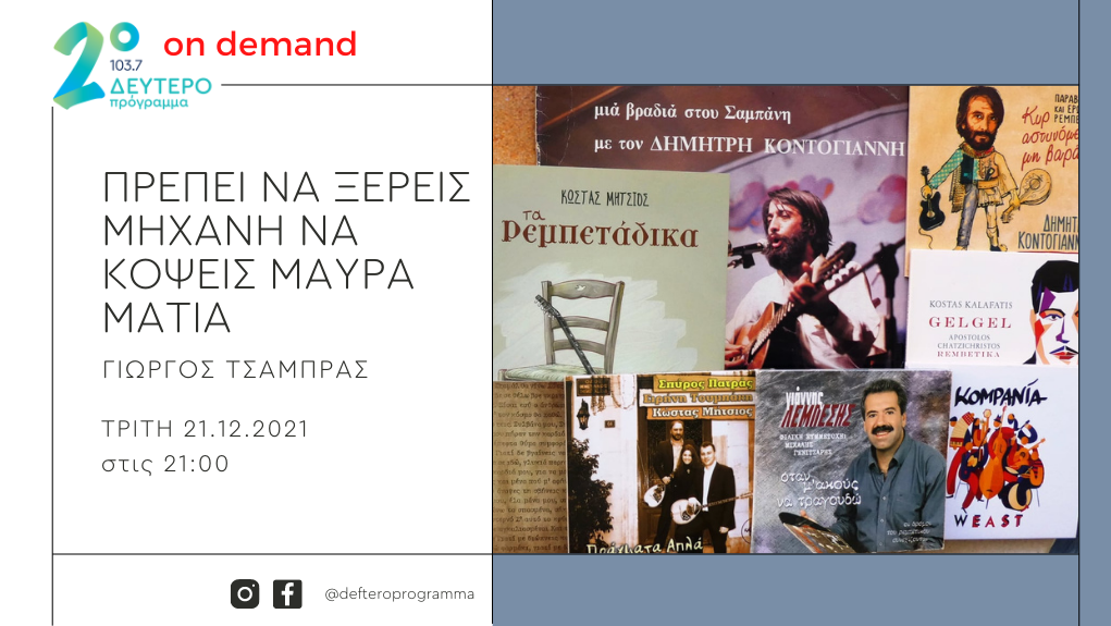 Δευτέρα 20 και Τρίτη 21 Δεκεμβρίου, 9 με 10 το βράδυ, στο Δεύτερο Πρόγραμμα 103.7.