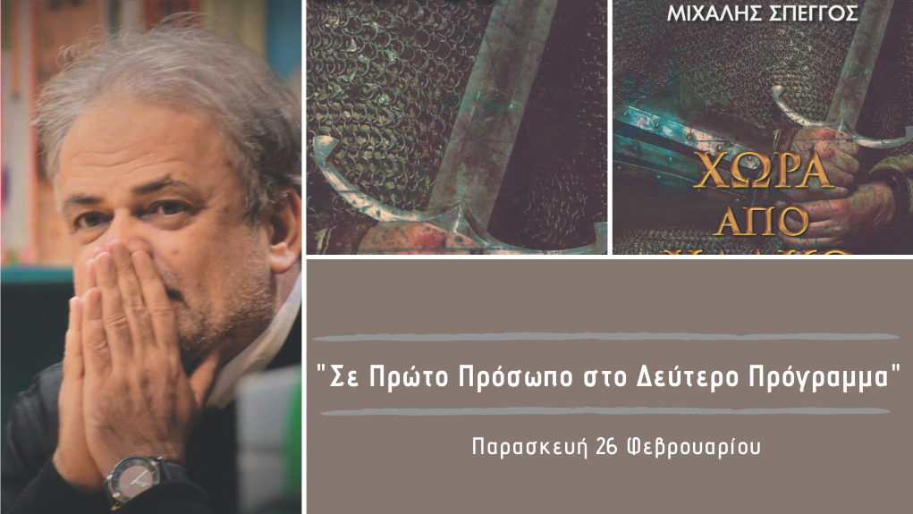 Σήμερα, Παρασκευή 26 Φεβρουαρίου ο Μιχάλης Σπέγγος μιλάει για το μυθιστόρημα του «Χώρα από χαλκό» που κυκλοφορεί από τις εκδόσεις Ελληνικά Γράμματα.