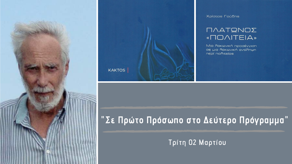 Σήμερα, Τρίτη 02 Μαρτίου, ο Χρίστος Γούδης (αστροφυσικός και συγγραφέας) μιλάει για το βιβλίο του “Πλάτωνος Πολιτεία”. Μια λακωνική προσέγγιση σε μια λακωνική αντίληψη περί πολιτείας. Κυκλοφορεί από τις εκδόσεις Κάκτος.