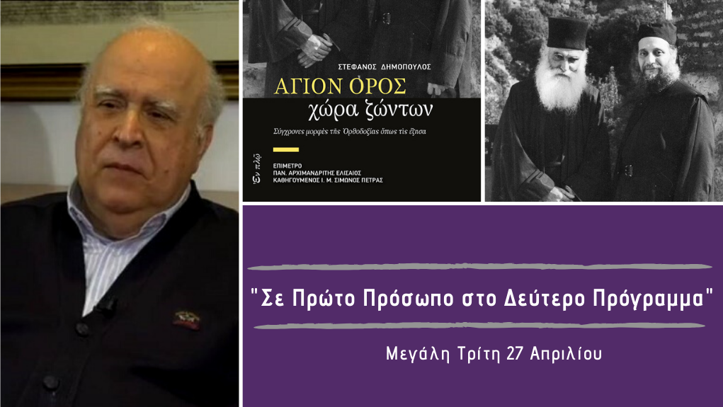 Σήμερα, ο Στέφανος Δημόπουλος μας μιλάει για το βιβλίο του «ΑΓΙΟΝ ΟΡΟΣ χώρα ζώντων» (Σύγχρονες μορφές της Ορθοδοξίας όπως τις έζησα). Επίμετρο ΠΑΝ. ΑΡΧΙΜΑΝΔΡΙΤΗΣ ΕΛΙΣΑΙΟΣ ΚΑΘΗΓΟΥΜΕΝΟΣ Ι. Μ. ΣΙΜΩΝΟΣ ΠΕΤΡΑΣ. Κυκλοφορεί από τις εκδόσεις Εν Πλω.