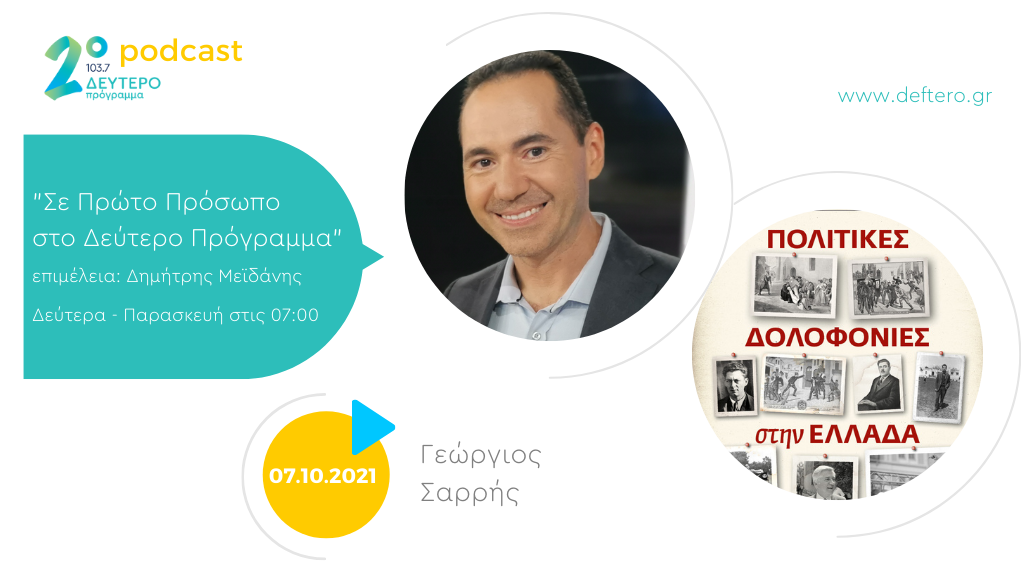 Σήμερα ο Γεώργιος Σαρρής μας μιλάει για το βιβλίο του «Πολιτικές Δολοφονίες στην Ελλάδα» (Από τον κυβερνήτη Ιωάννη Καποδίστρια στον μουσικό Παύλο Φύσσα). Κυκλοφορεί από τις εκδόσεις Οξύ.