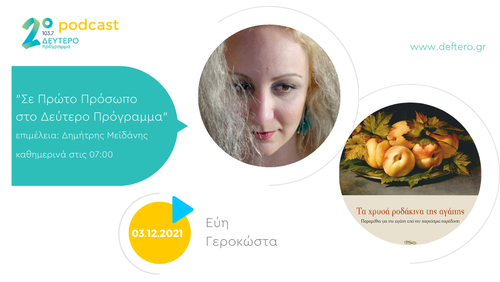 Σήμερα η Εύη Γεροκώστα μας μιλάει για το βιβλίο της «Τα χρυσά ροδάκινα της αγάπης» (Παραμύθια από την παγκόσμια παράδοση). Κυκλοφορεί από το Κέντρο Μελέτης & Διάδοσης Μύθων & Παραμυθιών.