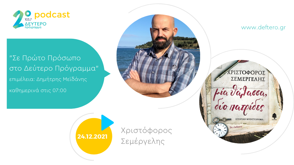 Σήμερα ο Χριστόφορος Σεμέργελης μας μιλάει για το ιστορικό μυθιστόρημα «μια θάλασσα, δύο πατρίδες». Κυκλοφορεί από τις εκδόσεις Κέδρος.