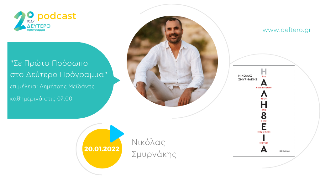 Σήμερα ο Νικόλας Σμυρνάκης μας μιλάει για το βιβλίο του «Η αλήθεια, ένα συναρπαστικό ταξίδι στα 8 ανθρώπινες ανάγκες». Κυκλοφορεί από τις εκδόσεις Διόπτρα.