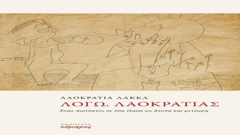 Αυτά και άλλα πολλά και περιπετειώδη διηγείται η Λαοκρατία Λάκκα, στο βιβλίο της «Λόγω Λαοκρατίας ένας περίπατος σε όσα έζησα ως άτοπη και μετέωρη» που κυκλοφορεί από τις εκδόσεις Εύμαρος.