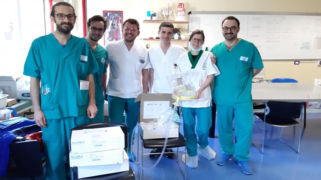 Οι “ήρωες με τις λευκές και πράσινες στολές” ευχαρίστησαν την Ελληνική Κοινότητα Πάρμας για την από καρδιάς δωρεά τους στο Νοσοκομείο.