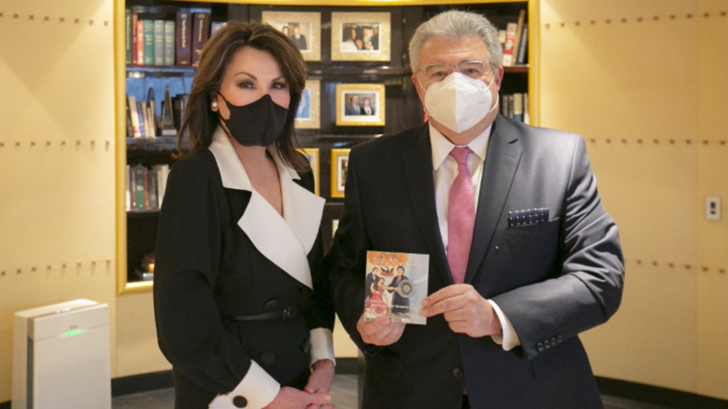 Μετά το πέρας της συνάντησής τους, η κ. Αγγελοπούλου έδωσε στον κ. Χρυσουλάκη τον «ΠΡΟΠΟΜΠΟ», το συλλεκτικό μετάλλιο στο οποίο αποτυπώνεται η «αναγεννηθείσα Ελλάδα», έργο του λαϊκού ζωγράφου Θεόφιλου Χατζημιχαήλ.