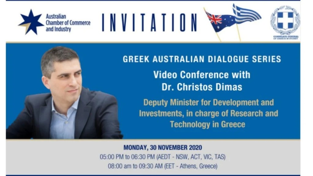 Η τηλεδιάσκεψη θα πραγματοποιηθεί σήμερα, Δευτέρα, 30 Νοεμβρίου, από τις 5:00μμ έως τις 6:30μμ (AEDT – NSW, ACT, VIC, TAS – 8:00πμ – 9:30πμ EET- Αθήνας)