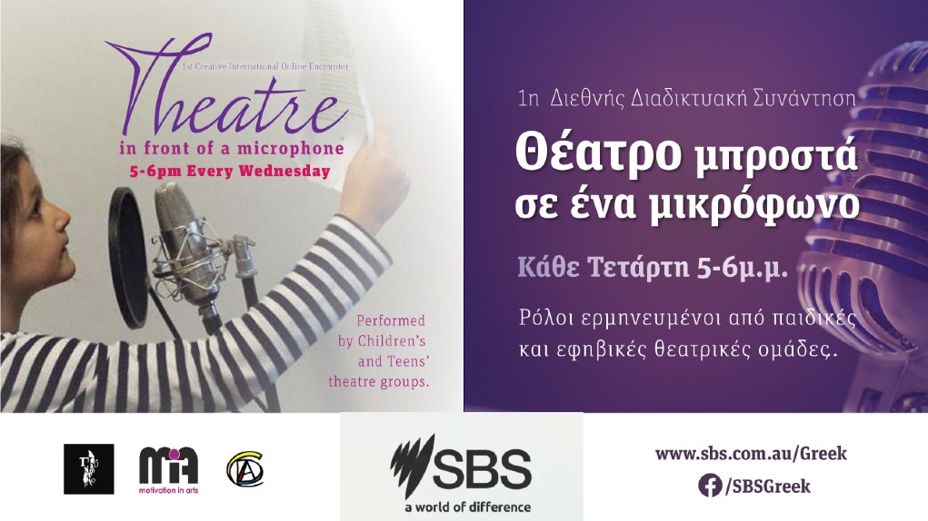 Από τις αρχές Μαΐου, το Δημιουργικό Κέντρο Δράματος και Τεχνών (Creative Drama & Arts Centre) της Ελληνικής Κοινότητας Μελβούρνης συνδιοργανώνει με το Θεατρικό Εικαστικό Καλλιτεχνικό Κέντρο “Πούπουλο” της Θεσσαλονίκης και το Ίδρυμα Motivation in Arts της Πάφου, την 1η Διεθνή Διαδικτυακή Συνάντηση με τίτλο: «Οι παιδικές και οι εφηβικές θεατρικές ομάδες ερμηνεύουν ρόλους μπροστά από ένα μικρόφωνο».