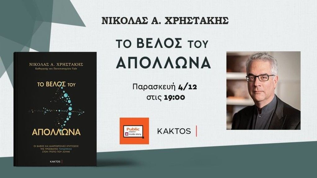 Οι Εκδόσεις Κάκτος, τo Public και το Inside Story διοργανώνουν διαδικτυακή παρουσίαση για το νέο βιβλίο του καθηγητή στο Πανεπιστήμιο Yale Νίκολα Α. Χρηστάκη “ΤΟ ΒΕΛΟΣ ΤΟΥ ΑΠΟΛΛΩΝΑ, Οι βαθιές και μακροχρόνιες επιπτώσεις της πρόσφατης πανδημίας στον τρόπο που ζούμε“.