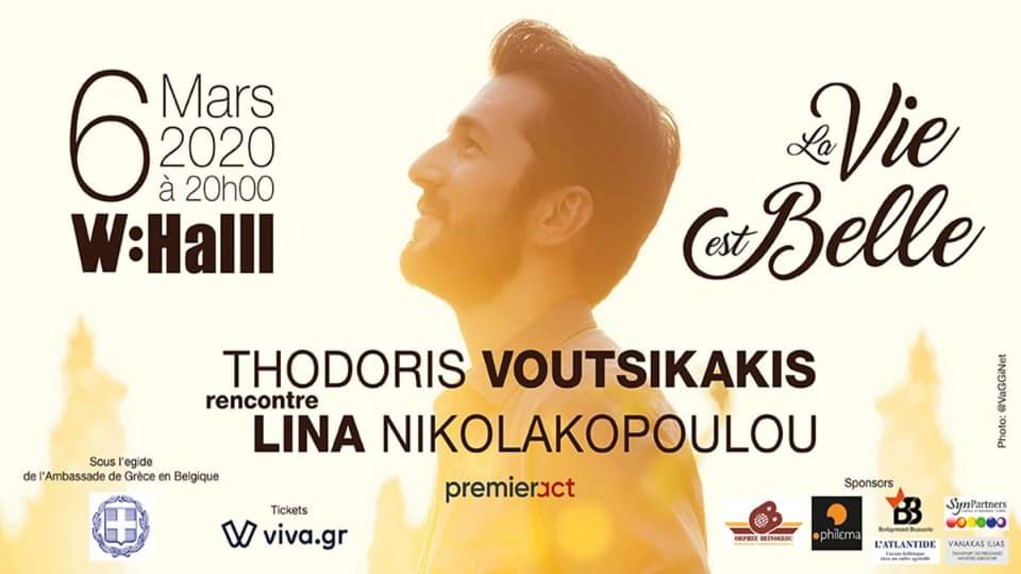 Αυτή την Παρασκευή, 6 Μαρτίου 2020, στις Βρυξέλλες, στο Θέατρο W-Hall Auditorium του Δήμου Woluwe-Saint-Pierre της Ευρωπαϊκής πρωτεύουσας, η Λίνα Νικολακοπούλου συναντά τον Θοδωρή Βουτσικάκη σε μία μοναδική συναυλία. Η συναυλία, που έχει τεθεί υπό την αιγίδα της Ελληνικής Πρεσβείας στο Βέλγιο, πραγματοποιείται στο πλαίσιο των εμφανίσεων του ξεχωριστού τραγουδιστή με την αγαπημένη στιχουργό σε επιλεγμένες πόλεις της Ελλάδας και του εξωτερικού, με αφορμή τη δισκογραφική συνεργασία τους με τον κορυφαίο Ιταλό μελωδιστή Nicola Piovani.