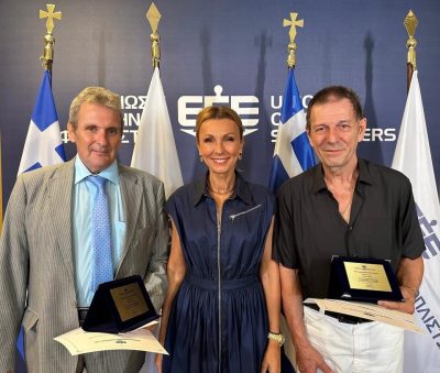 Τιμητική Διάκριση Ναυτοσύνης ως αναγνώριση για τη μεγαλύτερη θαλάσσια υπηρεσία και την υποδειγματική τους προσήλωση στο ναυτικό επάγγελμα και ιδεώδες, απένειμε η Πρόεδρος της Ένωσης Ελλήνων Εφοπλιστών κυρία Μελίνα Τραυλού στον μαστρο Γιάννη Βαρβατέ και τον μάγειρα Γιάννη Πτήνη, σε εκδήλωση που διοργανώθηκε από την Ένωση Ελλήνων Εφοπλιστών.
