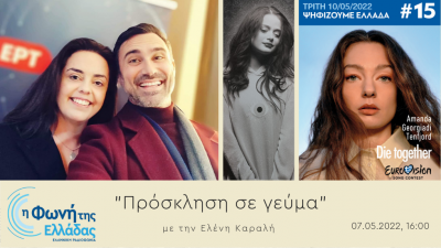 Με τη Eurovision να βρίσκεται στην τελική ευθεία, η εκπομπή «Πρόσκληση σε γεύμα» είναι αφιερωμένη στον μεγάλο μουσικό διαγωνισμό. Καλεσμένοι οι σχολιαστές των δύο ημιτελικών και του τελικού της Eurovision, η διευθύντρια του Δεύτερου Προγράμματος Μαρία Κοζάκου, ο ηθοποιός και σεναριογράφος Γιώργος Καπουτζίδης, αλλά και η Στεφανία Λυμπερακάκη η οποία εκπροσώπησε την Ελλάδα στον περσινό διαγωνισμό με το «Last Dance».