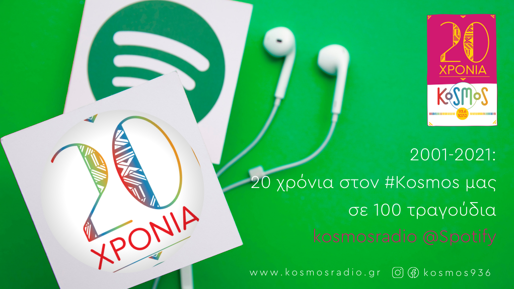 Στο μεταξύ, ανοίξαμε τα συρτάρια και επιλέξαμε 100 τραγούδια, πέντε για κάθε χρονιά, από το 2001 μέχρι και το 2020, τα οποία μπορείτε πλέον να βρείτε και να ακούσετε στη σελίδα του Kosmos στο Spotify: KosmosRadio. Μια εκλεκτική playlist 100 τραγουδιών για να σας ταξιδεύει στις καλύτερες μουσικές στιγμές της δικής μας 20ετίας.