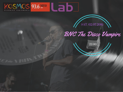 Το Σάββατο 2/07 στις 22.00 στις συχνότητες του Kosmos, ο BnC, The Disco Vampire παρουσιάζει ένα πρωτότυπο mixset ειδικά για το “Kosmos Lab”.