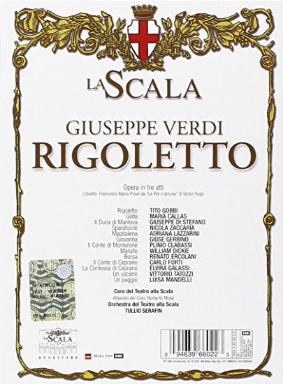Στο πλαίσιο της εκπομπής «Η Όπερα στο Τρίτο» και του έτους «Μαρία Κάλλας», 40 χρόνια από τον θάνατό της, το Σάββατο, 25 Νοεμβρίου, στις 8.00 το βράδυ, θα μεταδοθεί η παράσταση της όπερας «Ριγκολέτο» του Τζουζέπε Βέρντι, σε ηχογράφηση του 1955 από τo περίφημο Teatro alla Scala του Μιλάνου.