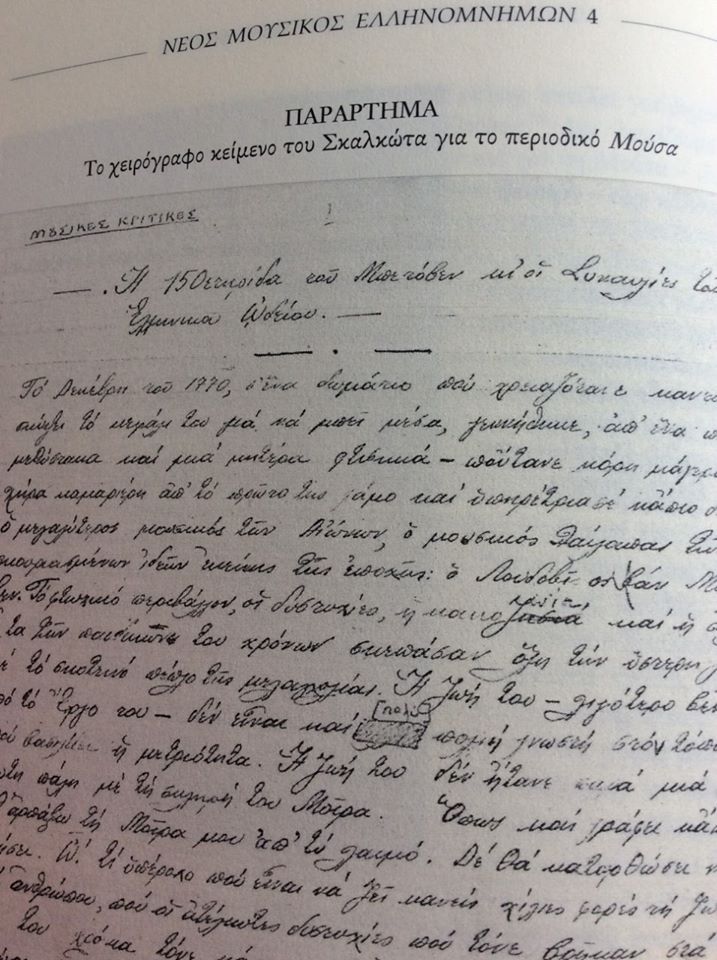 “Νέος Μουσικός Ελληνομνήμων”. Αφιέρωμα στον Νίκο Σκαλκώτα. Τεκμήρια και μελέτες.