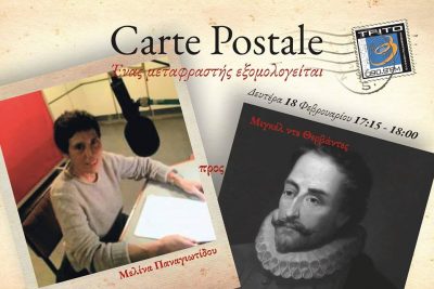 Η μεταφράστρια Μελίνα Παναγιωτίδου διαβάζει τις καρτ ποστάλ που έγραψε στον Ισπανό συγγραφέα Μιγκέλ ντε Θερβάντες και του αφιερώνει μουσική.