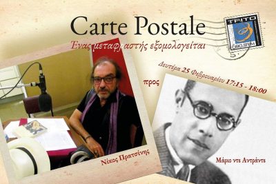 Ο Νίκος Πρατσίνης διαβάζει τις καρτ ποστάλ που έγραψε στον Βραζιλιάνο συγγραφέα Μάριο ντε Αντράντε και του αφιερώνει μουσική.