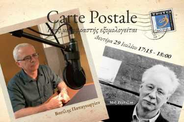 Ο μεταφραστής και ακαδημαϊκός καθηγητής Βασίλης Παπαγεωργίου διαβάζει την καρτ ποστάλ που έγραψε στον Γερμανό συγγραφέα Μαξ Ζέμπαλντ και του αφιερώνει μουσική!