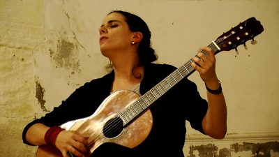 Κατερίνα Φωτεινάκη: Τραγουδοποιός, ερμηνεύτρια, εξερευνήτρια της ποίησης, της μουσικής, του ρυθμού και της κιθάρας, μια σύγχρονη εκπρόσωπος των τροβαδούρων.